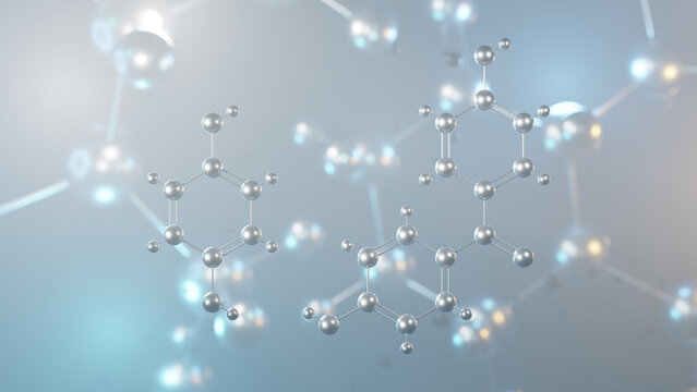 polyether ether ketone molecular structure, 3d model molecule, thermoplastic polymer structural chemical formula view from a microscope