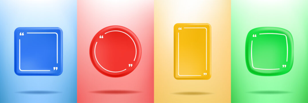 Vector illustration. 3d minimalist posters set. Quote frames blank template. Isolated textbox. Citation empty speech bubbles. Color background. Simple shapes. Design for poster, magazine, layout