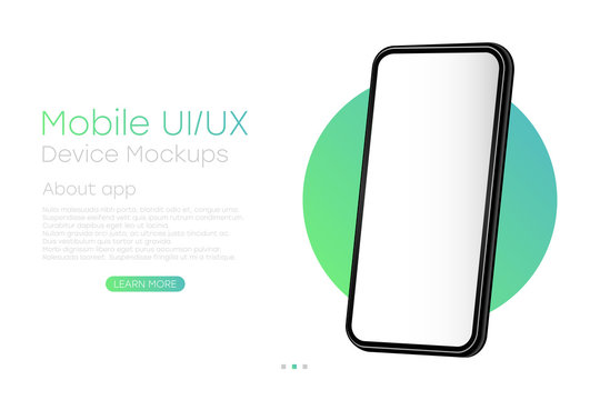 Smartphone with blank screen. Frameless realistic 3d cell phone template for infographics or presentation. UI, UX design with phone for website page. Vector Illustration.