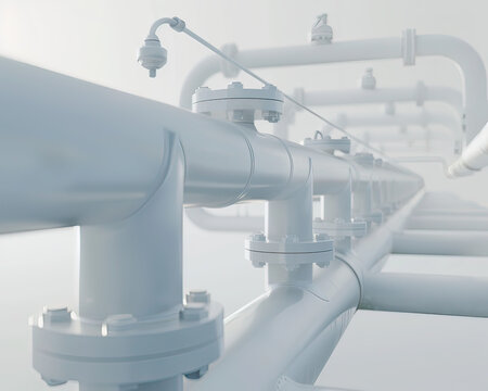 3D render minimalist pipeline model, infrastructure focus, space for text