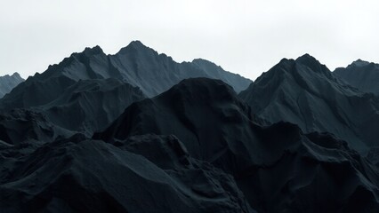 Black mountain texture closeup. Long grunge banner. The geometric shape of the stone 3d effect. Black abstract grunge background.