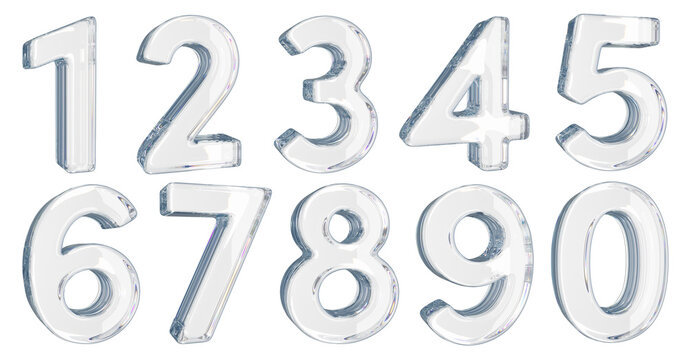 3d blue numbers. Realistic light blue plastic digits render, inflated bubble business symbols 10 number from 0 to 9 for banner anniversary isolated vector set