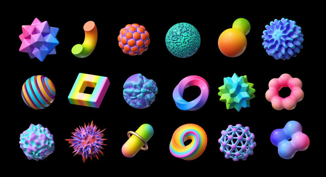 Realistic 3D black metal Geometric Shapes Objects. Realistic geometry elements isolated on white background with metallic color gradient.