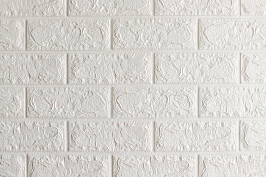 Abstract geometric white texture brick on the wall, white brick pattern on mapping object 3D, Simple clean white background texture. interior detail wall panel.