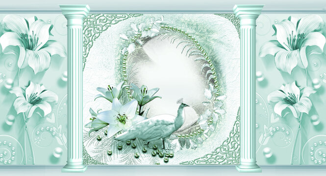 3d photo wallpapers. Flower illustration. 3d image. Photo wallpapers. The fresco.
