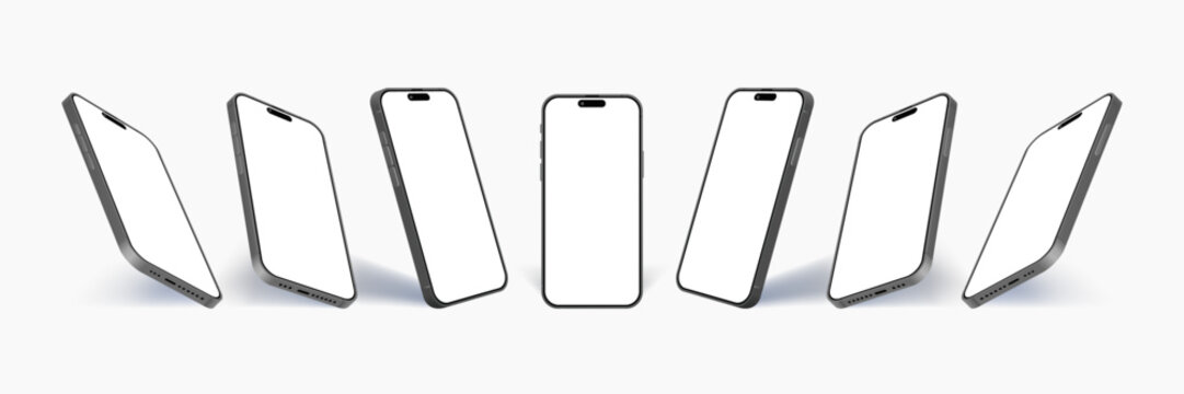 Realistic Smartphone Mockup Set: 3D Mobile Phone Display and Device Screen Frame Illustrations in Front, Side, and Perspective Views for Modern Gadgets. Vector.