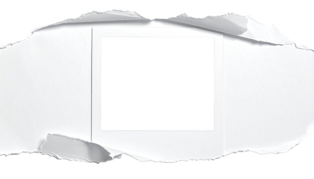 Marco fotográfico realista con textura de papel rasgado en los bordes, como si la foto estuviera rota a mano. El papel debe tener un aspecto fibroso, con sombras suaves en los bordes para dar volumen.