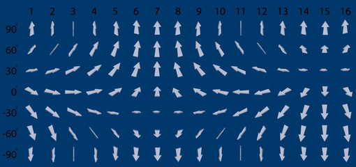 Big set of arrows. Animation of cyclic rotation of arrows in isometric.