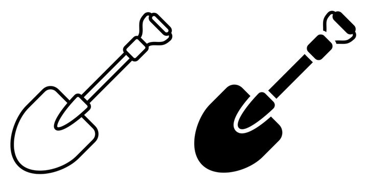 Shovel editable stroke outline icon isolated on white background flat vector illustration, black outline, Pixel perfect