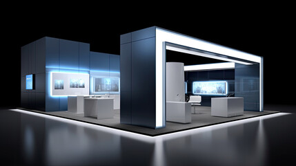 Grand Exhibition stand display mock up. High detailed 3d Vector illustration.