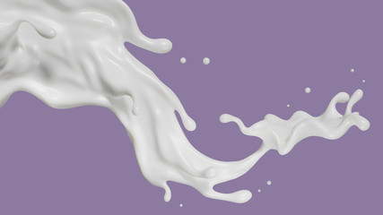 Milk smooth splash on floor abstract shapes , isolated on  purple background , 3d illustration 3D Rendering