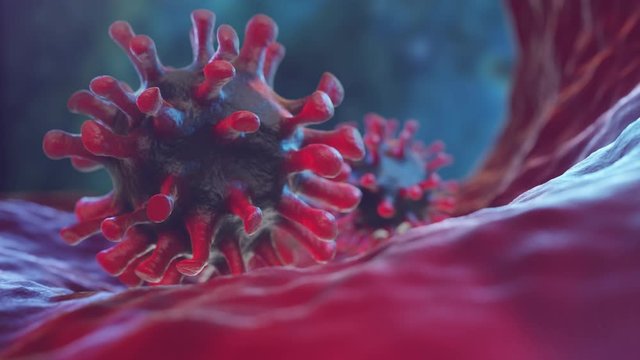 Coronavirus covid -19 virus infection inside a healthy body close up 3d Render Animation Alpha