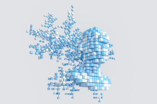 transforming blocks geometric 3d illustration. Can be used to represent psychology deconstruction, blockchain technology or abstract structure build
