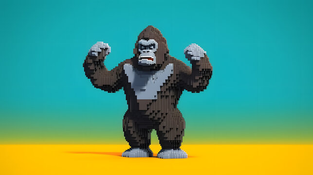 Bear, animals made of 3d cubes, voxel illustration for video games or illustrating 3d animation and vfx studios, created with Generative AI technology
