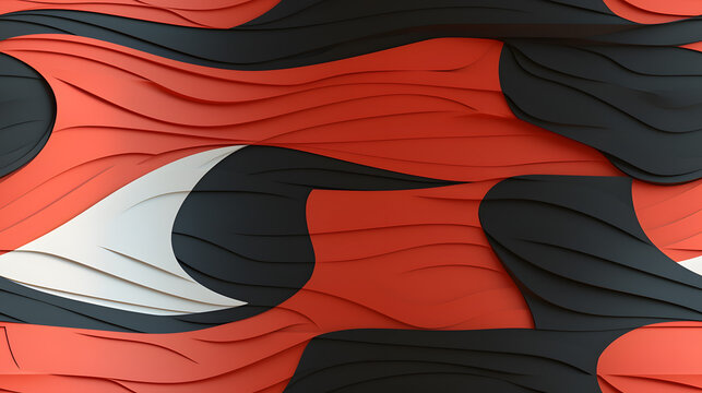 Red and black geometric patterns on 3D wall panel, modern touch, seamless texture