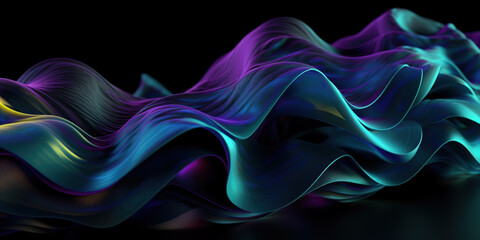 3d render, modern abstract wallpaper with curvy dark blue pink violet translucent film ruffles, layers and folds. Fashion background. Herb essential oil aroma bootle and leaf , Generative Ai