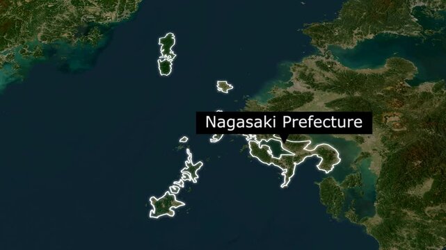 3D Map of Nagasaki Prefecture Island in Japan seen from above