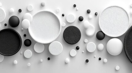 Abstract Black and White Circles and Spheres 3D Render Background for Modern Design and Technology Concepts
