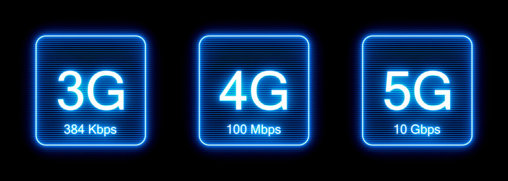 Wireless cellular network speed evolution icons: 3g, 4g, 5g