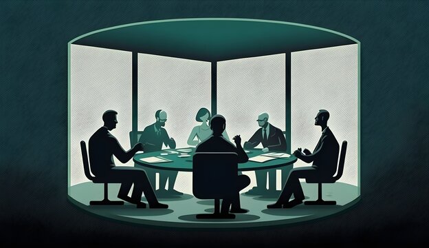 Wallpaper Illustration and background of a business meeting. Front View. Concept of business, corporate, office. Generative AI.