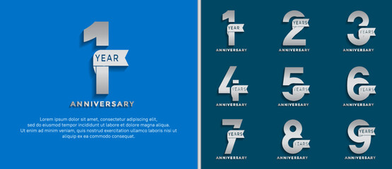 set of anniversary logo style silver color on blue background for special moment