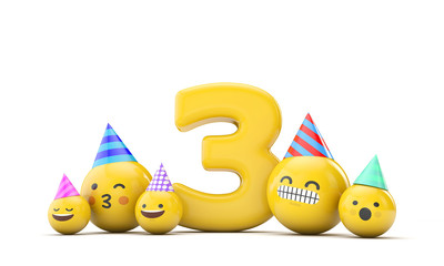 Number 3 emoji birthday party celebration. 3D Render