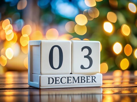 December 3rd Calendar Blocks - Crisp White Minimalist Desk Calendar Stock Photo