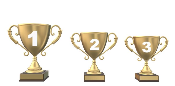 Empty winners podium with places for 1st, 2nd, and 3rd place in rendering on background, winners, podium