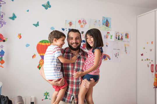 Shopping Day Of A Modern Family. Family of Three Spending A Shopping Weekend Together In A Modern Mall.