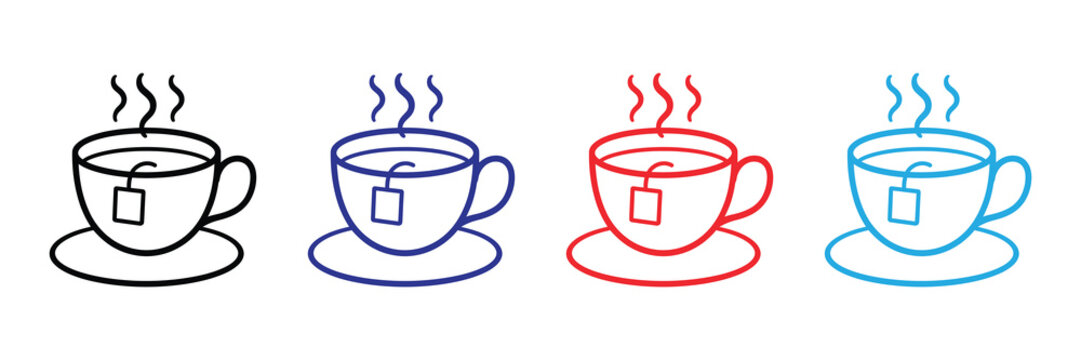 A simple illustration showcasing four different colored cups of steaming hot beverages with saucers offering a visually appealing design