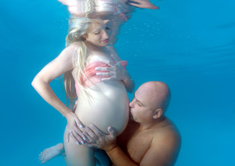 Pregnant woman and man in the pool