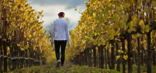 Asian mature woman take a picture at a fruit farm, banner of travel and technology concept