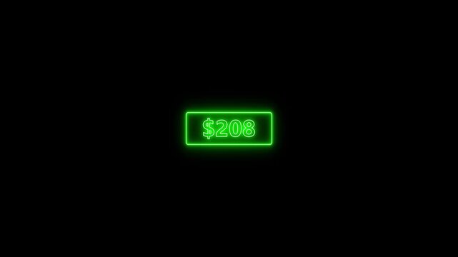Glowing neon Number counter animation from zero to four hundred Doller. Animated counting Numbers from $0 to $400 on black background. Counting money animation.