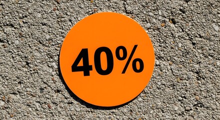 Bright Orange Circular Price Tag with Bold Black “40%” on Textured Concrete Surface