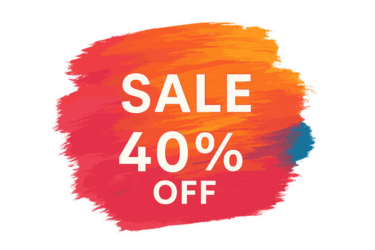 Sale 40% Off Sign with Vibrant Abstract Acrylic Brush Stroke Background, Watercolor Texture, Colorful Vector Illustration for Shop and Promotional Sale Banners