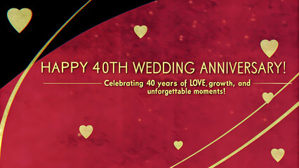 40th Anniversary Celebration. Golden 40 Years Anniversary Animation in Gold Color on the Transparent Background, Alpha Channel. Great for greetings, celebrations, events, and gifts.