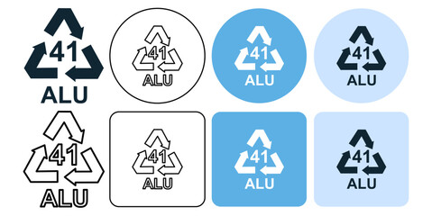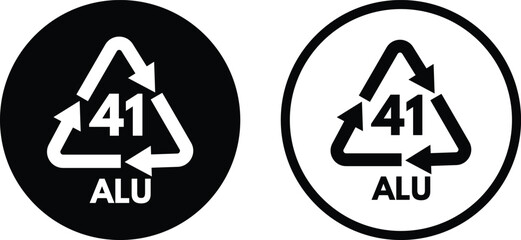 Aluminium recycling symbol ALU 41 icon set in two styles . Vector illustration