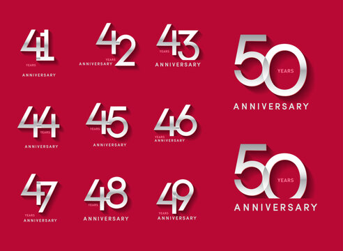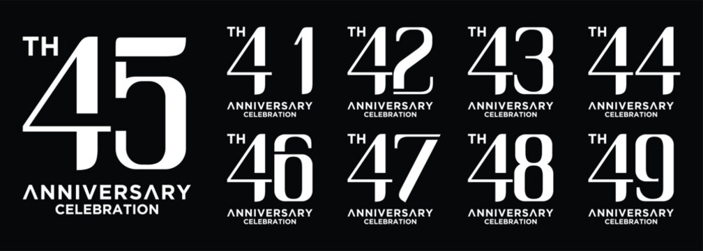 set 41, 42, 43, 44, 45, 46, 47, 48, 49, 50 Year Anniversary celebration Vector Template Design Illustration