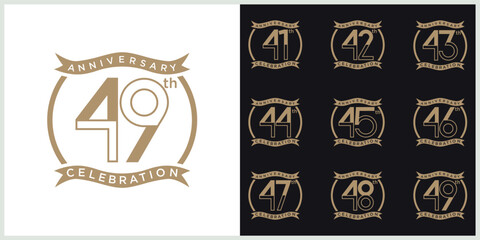 40th anniversary set 41 42 43 44 45 46 47 48 49 vector template. Design for birthday celebration, greeting card and invitation card.
