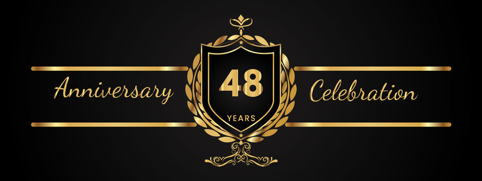 48th Anniversary. Anniversary template design with golden text for anniversary celebration event. Vector Templates Illustration