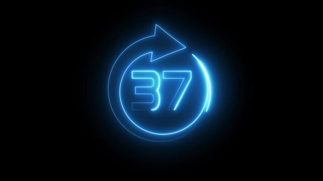 Glowing neon 48 Minute Clock Timer Animation. Stopwatch Icon in Flat Style. on black Background. Time Counter Animation .