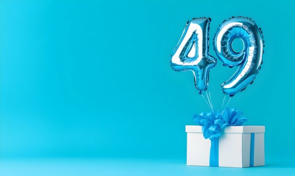 Number 49 wrapped with a festive ribbon. Image for birthday or anniversary party