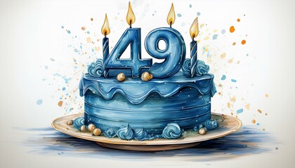 Illustration of decorated blue cake for birthday or anniversary party. Number 49, forty-ninth birthday celebration