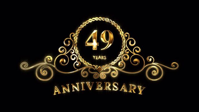 49th Anniversary Celebration. Happy 49 Years Anniversary Animation in Gold Color on the Transparent Background, Alpha Channel. Great for greetings, celebrations, events, and gifts.