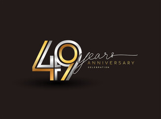 49th years anniversary logotype with multiple line silver and golden color isolated on black background for celebration event.
