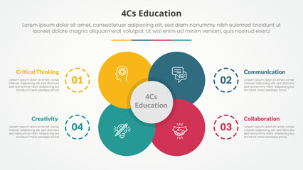 4cs education infographic concept for slide presentation with big flower center circle venn combination with 4 point list with flat style