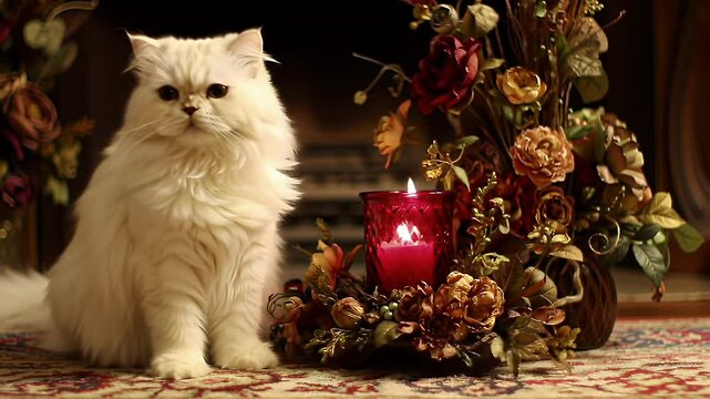 Caucasian woman and curled cat celebrate national pet month in cozy home