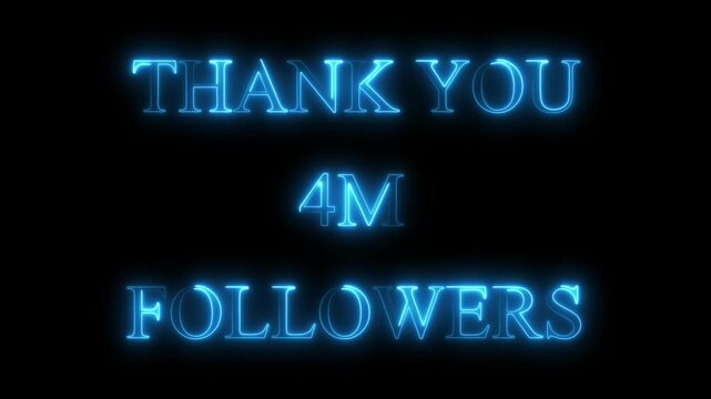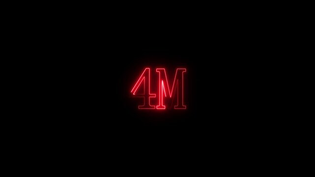 Glowing neon light 4M followers or subscribers celebration text animation on black background, Number 4M Neon Futuristic Effect, Trendy Glow Lighting, 4M animation neon text effect motion