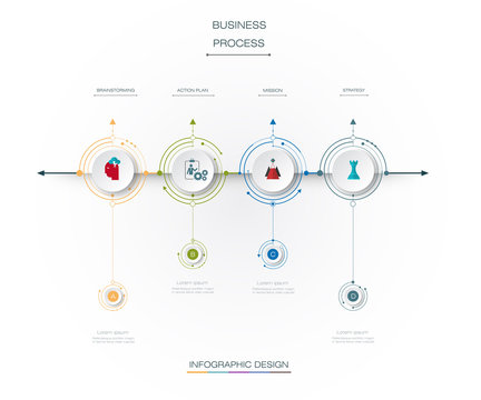Vector infographics timeline design template with 3D paper label and 4options or steps, integrated circles background. For content business, infographic diagram,  flowchart, process diagram, time line
