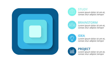 Vector circle arrows infographic, cycle diagram, square graph, presentation chart. Business concept with 4options, parts, steps, processes. 3d layers. 16x9 slide.